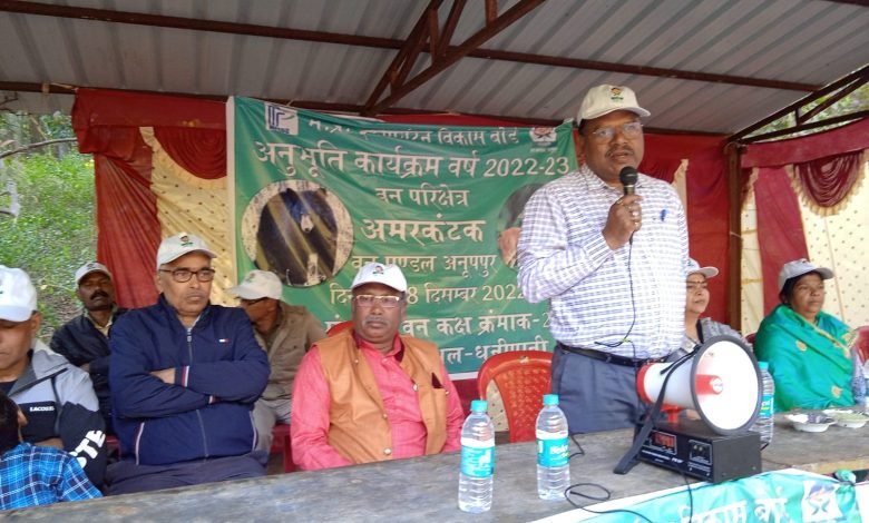 मध्य प्रदेश इको पर्यटन बोर्ड एवं वन विभाग के संयुक्त तत्वाधान में प्रतिवर्ष अनुसार इस वर्ष भी अनुभूति कार्यक्रमों का आयोजन किया जा रहा है जिसके तहत अनूपपुर वन मंडल के वन परीक्षेत्र अमरकंटक अंतर्गत धुनीपानी में रविवार को शास, उच्चतर माध्यमिक विद्यालय पोडकी के 120 छात्र-छात्राओं की उपस्थिति में अनुभूति कार्यक्रम का आयोजन किया गया जिसने वन वृत्त शहडोल की मुख्य वन संरक्षक एल,एल,उइके ने बच्चों को संबोधित करते हुए कहा कि बच्चे देश के भविष्य हैं उन्हें आने वाले समय में वन्य प्राणियों,पर्यावरण जैव विविधता के संरक्षण में तथा उनके हितों के लिए काम करना होगा इस दौरान उन्होंने शासन द्वारा आयोजित किए जा रहे अनुभूति कार्यक्रम के उद्देश्यों के बारे में अवगत कराया तथा बच्चों को शपथ दिलाते हुए प्रतिभागियों को प्रमाण पत्र वितरित किया, नगर परिषद अमरकंटक के उपाध्यक्ष रज्जू नेताम ने कहा की वन संपदा तथा वन्य प्राणियों के साथ अमरकंटक क्षेत्र में पाए जाने वाली औषधियों के संरक्षण किए जाने की आवश्यकता है
