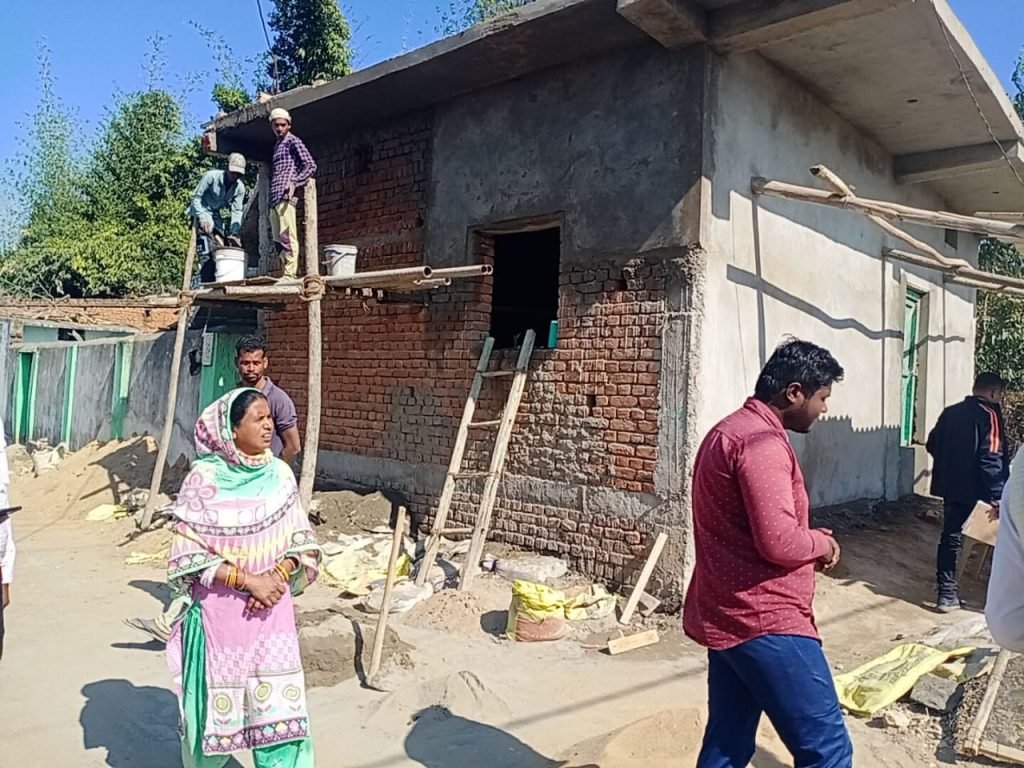 जांच करने पहुंचे पटवारी की मौजूदगी में भी निर्माण कार्य जारी