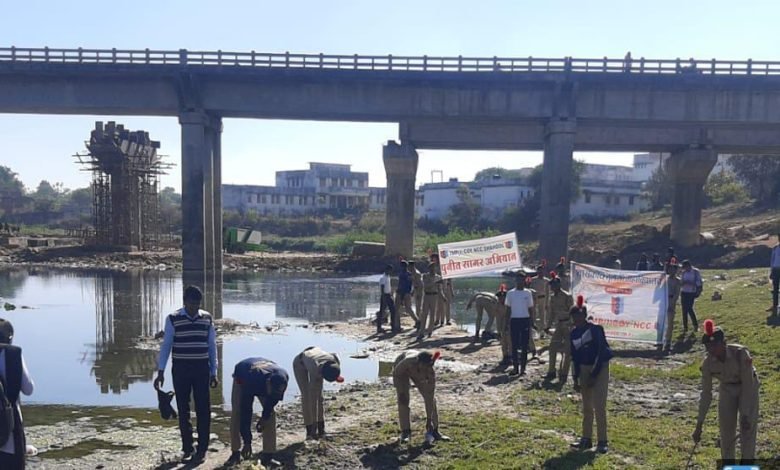 तिपान नदी के जल को स्वच्छ रखने एनसीसी कैडटों ने साफ-सफाई कर दिया जनजागरूकता का संदेश