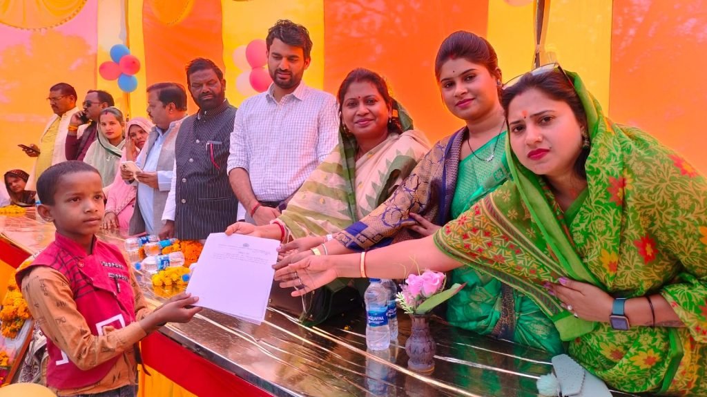 कार्यक्रम में विधायक जैतपुर एवं अन्य जनप्रतिनिधियों द्वारा गेंदेलाल प्रजापति, प्रशस्त प्रजापति, नरेंद्र प्रजापति को जाति प्रमाण पत्र, शेषमणि कुशवाहा को बटवारा प्रमाण पत्र, फूल कुमारी सिंह एवं रामप्रसाद पनिका को वृद्धा पेंशन योजना प्रमाण पत्र, मनोज प्रताप सिंह ज्ञानी प्रजापति को बाल आशीर्वाद योजना प्रमाण पत्र, ममता साहू एवं आरती प्रजापति को पात्रता पर्ची का वितरण किया गया। कार्यक्रम में लाड़ली लक्ष्मी योजना लाभान्वित बेटी प्रियंका साहू एवं दुर्गा साहू द्वारा सफलता की कहानी ग्रामीणों को बताया।