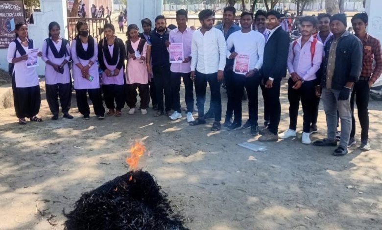 एनएसयूआई ने मुख्यमंत्री शिवराज सिंह चौहान के विकास यात्रा का निकाला शव यात्रा एवं