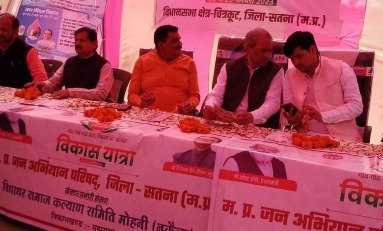 मध्य प्रदेश जिला सतना में 09 फरवरी 2023 को विकास यात्रा के पांचवे दिन चित्रकूट विधानसभा अंतर्गत विभिन्न ग्रामों में विकास यात्रा का आयोजन किया गया। चित्रकूट विधानसभा की विकास यात्रा सिंहपुर से शुरु हुई। इसके उपरांत ग्राम नकैला, साढ़ा, मलगौसा होते हुये पिण्ड्रा में समाप्त हुई।