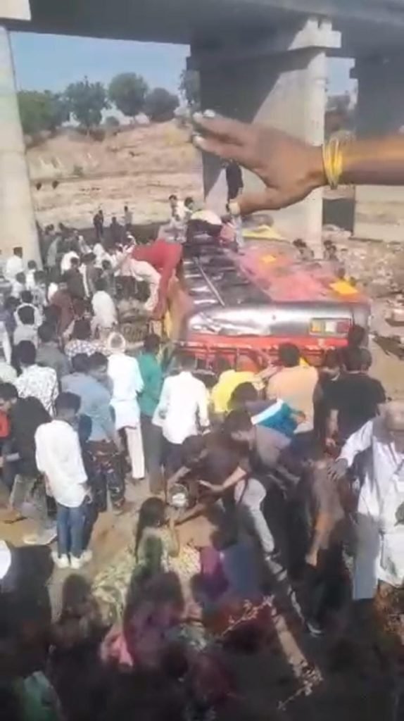 बस में सवार यात्रियों में मची चीख पुकार,आधिकारिक पुष्टि के अनुसार अभी 22 लोगों के शव बरामद हुए हैं,राहत बचाव का कार्य अभी चल रहा है