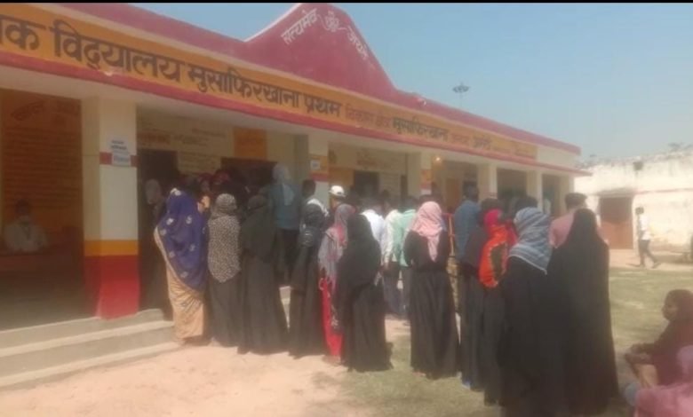 *मुसाफिरखाना के युवाओं ने दिखाई काफी उत्साहित सरकार चुनने में लगी मतदातओं की लंबी लाइन*