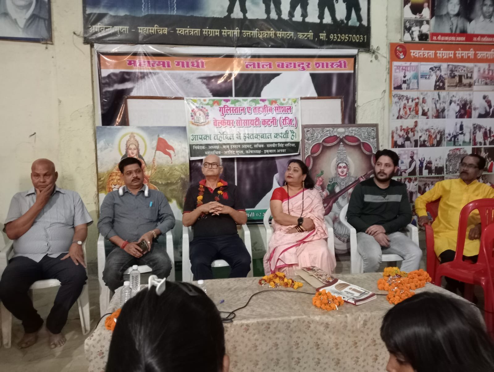 ख्याति लग कवियित्री सरिता सिंह कोहिनूर इस काव्य गोष्ठी में शामिल हुई । देश भक्ति की कविताएं एवं गजलें सुनाकर लोगों का मन मोह लिया। संस्था गुलिस्ता ने तहजीब सोशल वेलफेयर सोसाइटी के तत्वाधान में भाभी गोष्ठी आयोजित की गई। कटनी साहित्य जगत से जुड़े मारूफ अहमद हनफी , डॉक्टर राजेश श्रीवास्तव प्रखर, शरद जायसवाल, चंदन भाई, डॉक्टर नाज, प्रमोद भट्ट निलांचल, ईश्वर प्रसाद पुरवार, आशीष गुप्ता लक्ष्मी रजक, हेमलता अहिरवार आदि ने सुंदर-सुंदर गीतों को गाकर शहीदों को श्रद्धा सुमन अर्पित किए।