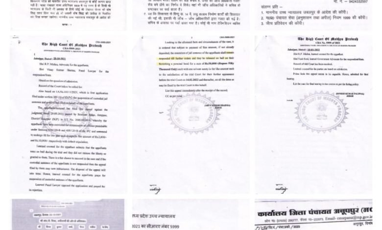 प्राप्त जानकारी अनुसार जांच के बिंदु क्रमांक एक में उमेश कुमार द्विवेदी के द्वारा शिवचरण पटेल को धारा 420 में जबलपुर उच्च न्यायालय के आदेश का हवाला देते हुए स्थगन का आदेश बताया गया है जबकि जबलपुर उच्च न्यायालय के केस क्रमांक 5999/ 2021 में किसी भी प्रकार का स्थगन संबंधी कोई आदेश नहीं दिया गया है बल्कि न्यायालय के द्वारा शिवचरण पटेल को निलंबित करने का एवं ₹50000 की बाउंड प्रस्तुत कर जमानत दी गई है और जब तक केस ट्रायल में चल रहा है तब तक के लिए निलंबित रहने का आदेश दिया गया है। इसके बावजूद उमेश कुमार द्विवेदी ने न्यायालय के आदेश को लेनदेन कर स्थगन बताकर जिला पंचायत सीईओ को गुमराह किया है। न्यायालयीन प्रकरण की हिंदी और इंग्लिश में कन्वर्ट की गई कॉपिया सलग्न