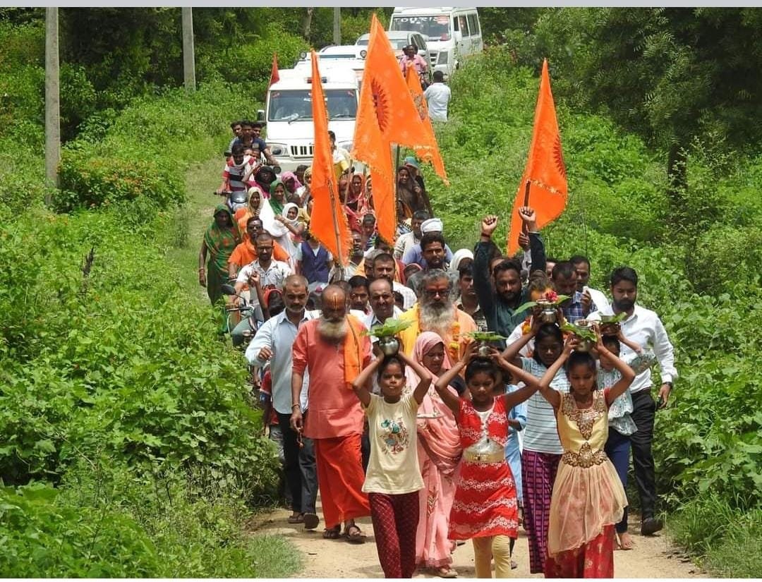 दीप,कलश, फूलमाला, ढोल-नगाडे एवं शंखनाद से यात्रा की पूर्णत