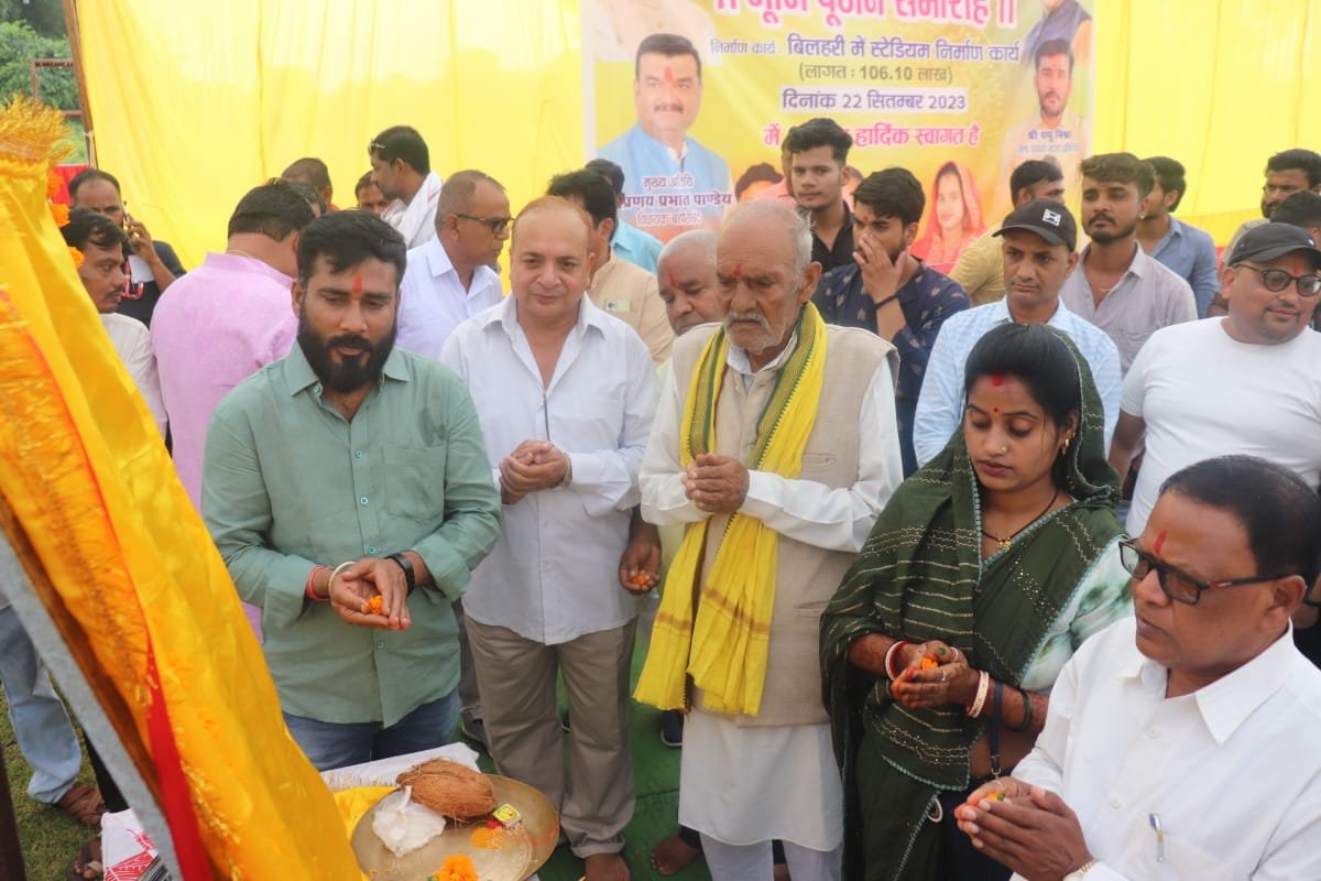 बिलहरी में 1 करोड़ 6 लख रुपए की लागत में स्टेडियम कार्य निर्माण का किया गया भूमि पूजन