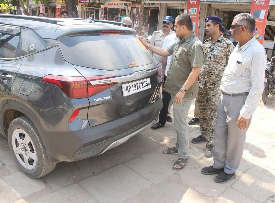 जिला कलेक्टर ने निकलवाये कार से स्टीकर, चालान काटने के निर्देश