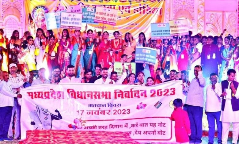 जिला कलेक्टर के निर्देशानुसार गरबा डांडिया महोत्सव में सतना शहर में मतदाताओं को किया जा रहा है प्रेरित एवं फैलाई गई जागरूकता