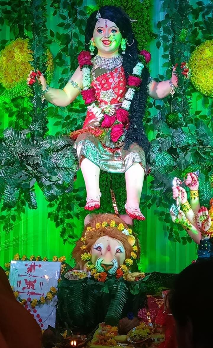 लल्लू भैया की तलैया के पास मां काली की प्रतिमा का अद्भुत ही नजर सुभाष चौक mission Chauk girls college पुरानी कचहरी झंडा बाजार गोल बाजार हर जगह माता की प्रतिमाएं कटनी शहर में विराजमान है