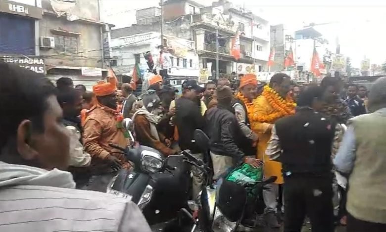 प्रत्याशी विधायक का जगह-जगह फूल मालाके साथ स्वागत किया यह एक विशाल जुलूस के रूप में शहर के सभी प्रमुख स्थानो गर्ग चौराहा घंटाघर चांडक चौक आजाद चौक झंडा बाजार सुभाष चौक होते हुए सभीजगह से निकाला गया