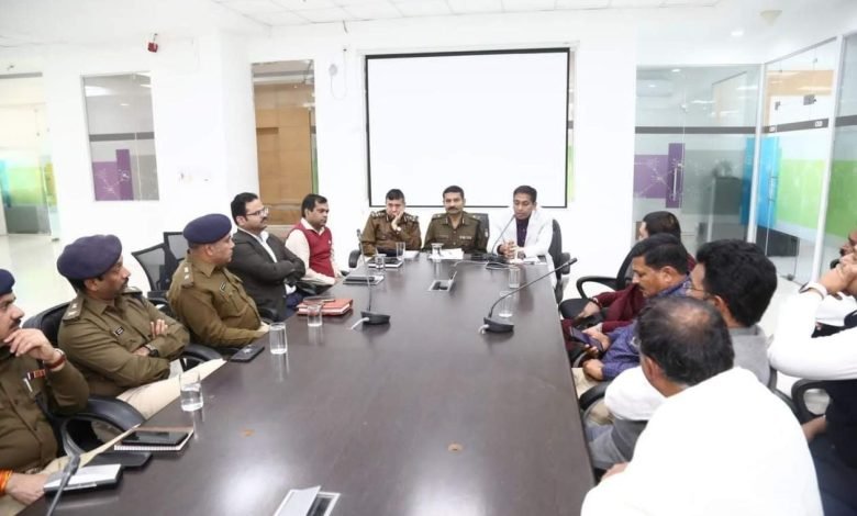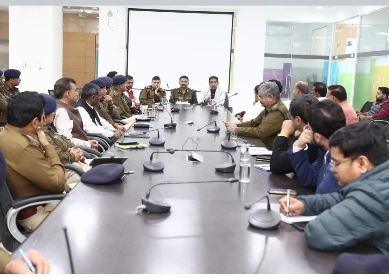 कलेक्टर श्री आशीष सिंह एवं पुलिस आयुक्त श्री हरि नारायण चारी मिश्रा की अध्यक्षता में धर्मगुरुओं के साथ धार्मिक स्थलों एवं अन्य स्थानों पर लाउडस्पीकर/डीजे के ध्वनि सीमा स्तर से संबंधित राज्य शासन द्वारा जारी निर्देशों से अवगत कराने बैठक स्मार्ट सिटी कार्यालय में आयोजित की गई। बैठक में अतिरिक्त पुलिस आयुक्त श्री अवधेश गोस्वामी,एडीएम श्री हरेन्द्र नारायण,एसडीएम,पुलिस अधिकारी एवं विभिन्न धर्मों के धर्मगुरु उपस्थित रहे।