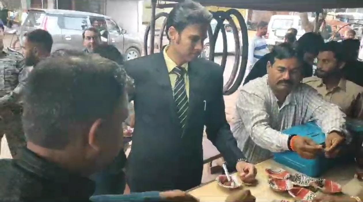 मध्य प्रदेश जिला कटनी कलेक्टर अवि प्रसाद ने खाये स्थानी लोगों के संग कुआं गांव के प्रसिद्ध गुलाब जामुन