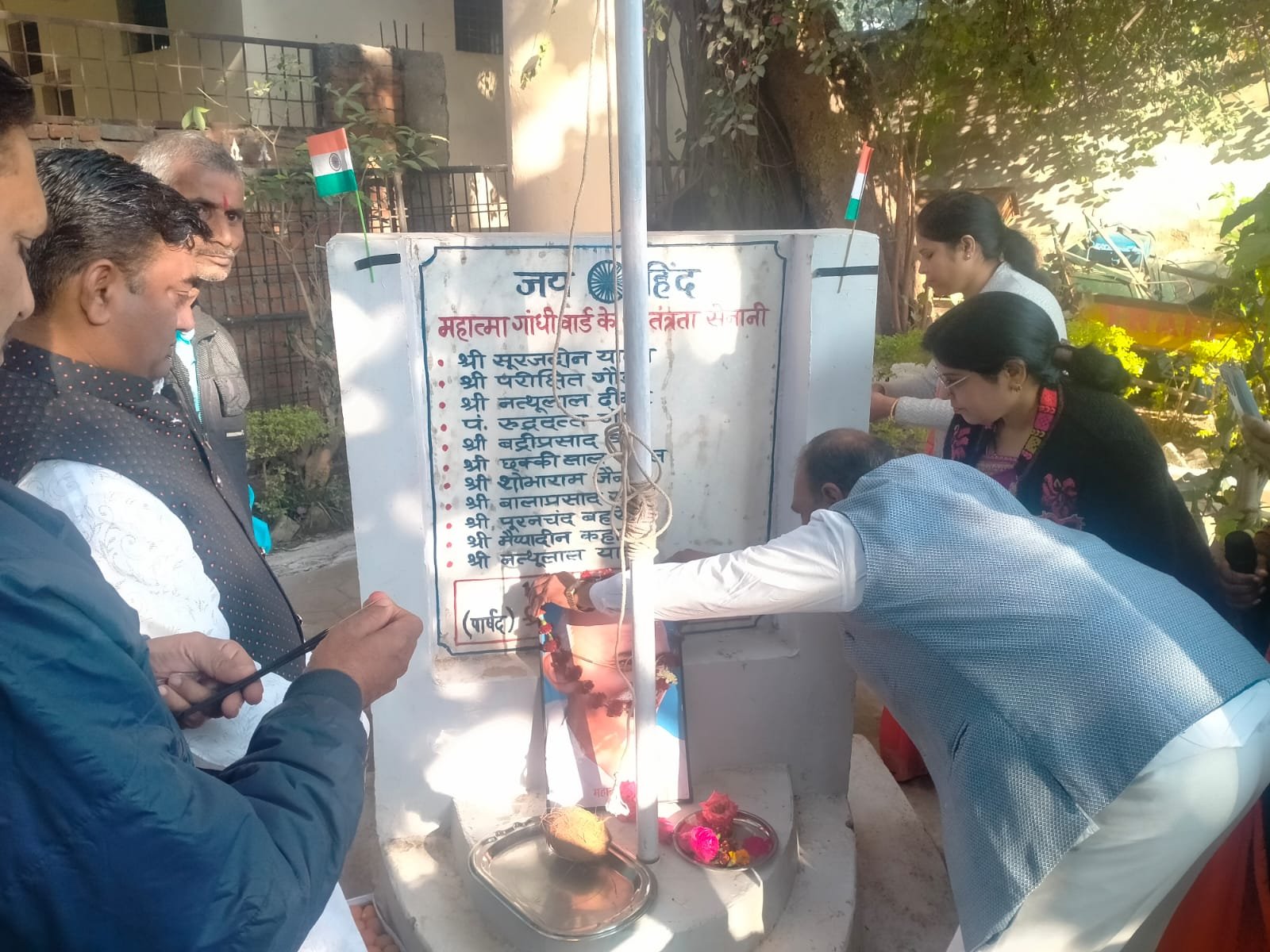 इसी कड़ी में मात्र शक्तियों में श्रीमति पूजा बहरे .सर्व शक्ति महिला सेवा समिति से श्रीमति माही तिवारी ,मिलन ब्लड डोनर एवं वेलफेयर से श्रीमति मंजू शर्मा ,स्वतंत्रता संग्राम सेनानी परिवार से श्रीमति शशि साहू, श्रीमति सरोज कनोजिया ,पूजा नायक, मुन्नी बर्मन,ऋतु निषाद ,के .एल .कनकने स्कूल की शिक्षिकाओं में श्रीमति रजनी गुप्ता एवं अन्य टीचरों की उपस्थिति में सर्वप्रथम स्वतंत्रता संग्राम सेनानी पार्क में मीसा बन्दी श्री विजय टीपा जी के द्वारा ध्वजारोहण किया गया