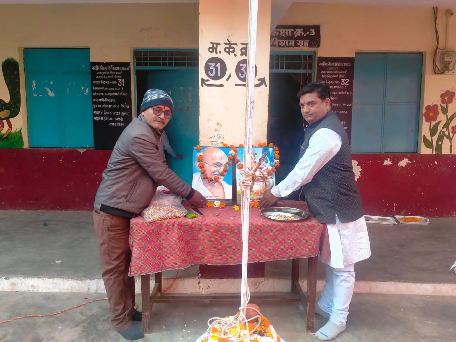 के. ऐल कनकने स्कूल में मीसा बन्दी श्री विजय टीपा ने के द्वारा ध्वजारोहण