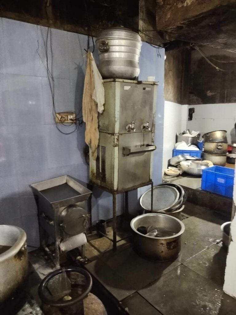 अस्वच्छ वातावरण में भोजन का निर्माण एवम स्टोर करना पाया गया।