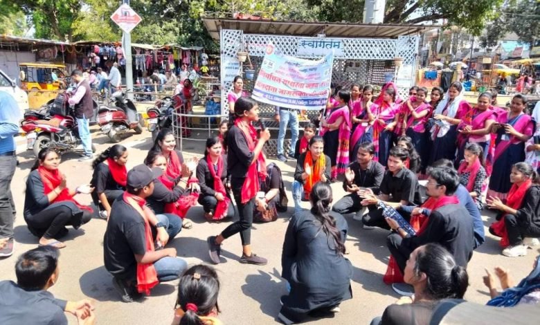 मतदाताओं को जागरूक करने एनईएस कॉलेज के छात्र-छात्राओं ने दी नुक्कड़ नाटक की प्रस्तुति