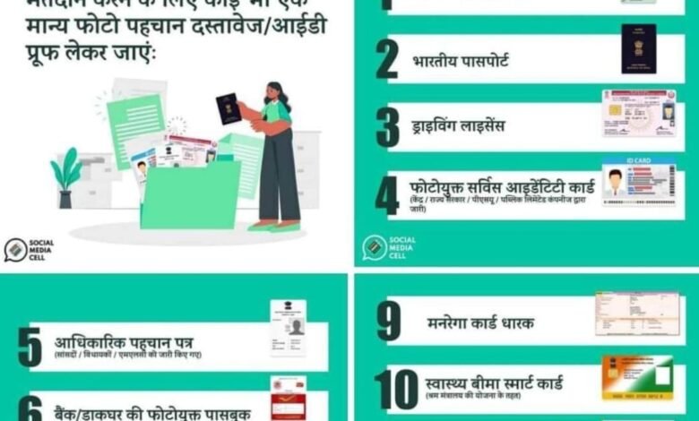 मतदाताओं को परिचय-पत्र के अलावा 12 वैकल्पिक में कोई भी एक दस्तावेज दिखाकर कर सकेंगे मतदान
