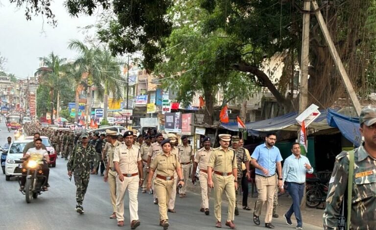 आदर्श चौक पटना पहुंची,,आदर्श चौक पटना से वाहन में सवार होकर जमगहना बाईपास तिराहा से खांडा़, भांँड़ी तिराहा, बस स्टैंड, फव्वारा तिराहा होकर वापस रक्षित केंद्र पहुंची,जहां फ्लैग मार्च संपन्न हुआ।