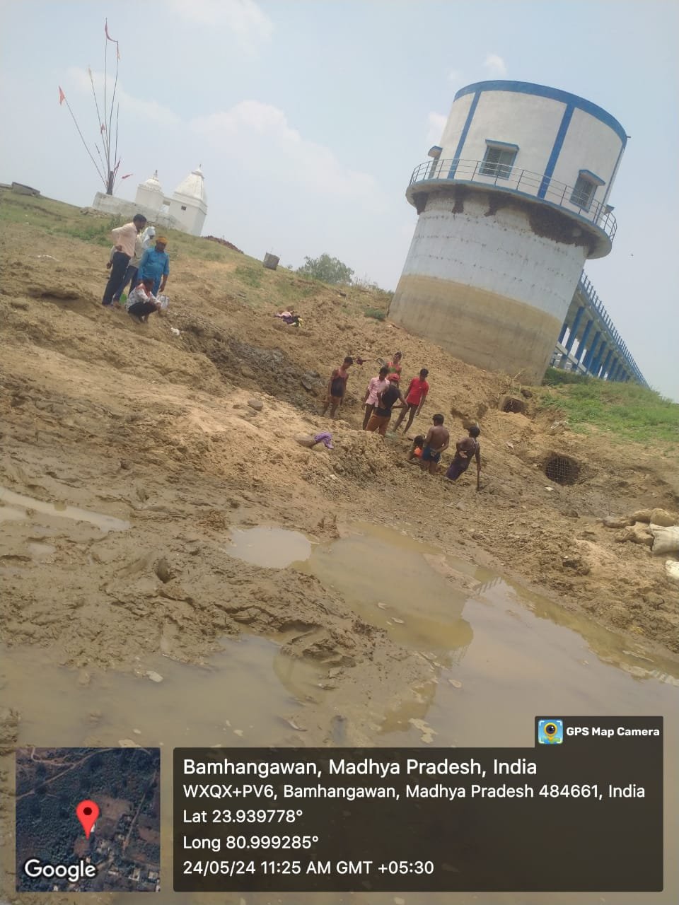 सूखा ग्रस्त नल जल प्रोजेक्ट पानी की राह देख रहा है वहीं प्रोजेक्ट मैनेजर व्दारा जेसीबी मशीन लगाकर नदी में खुदाई करवाई जा रही