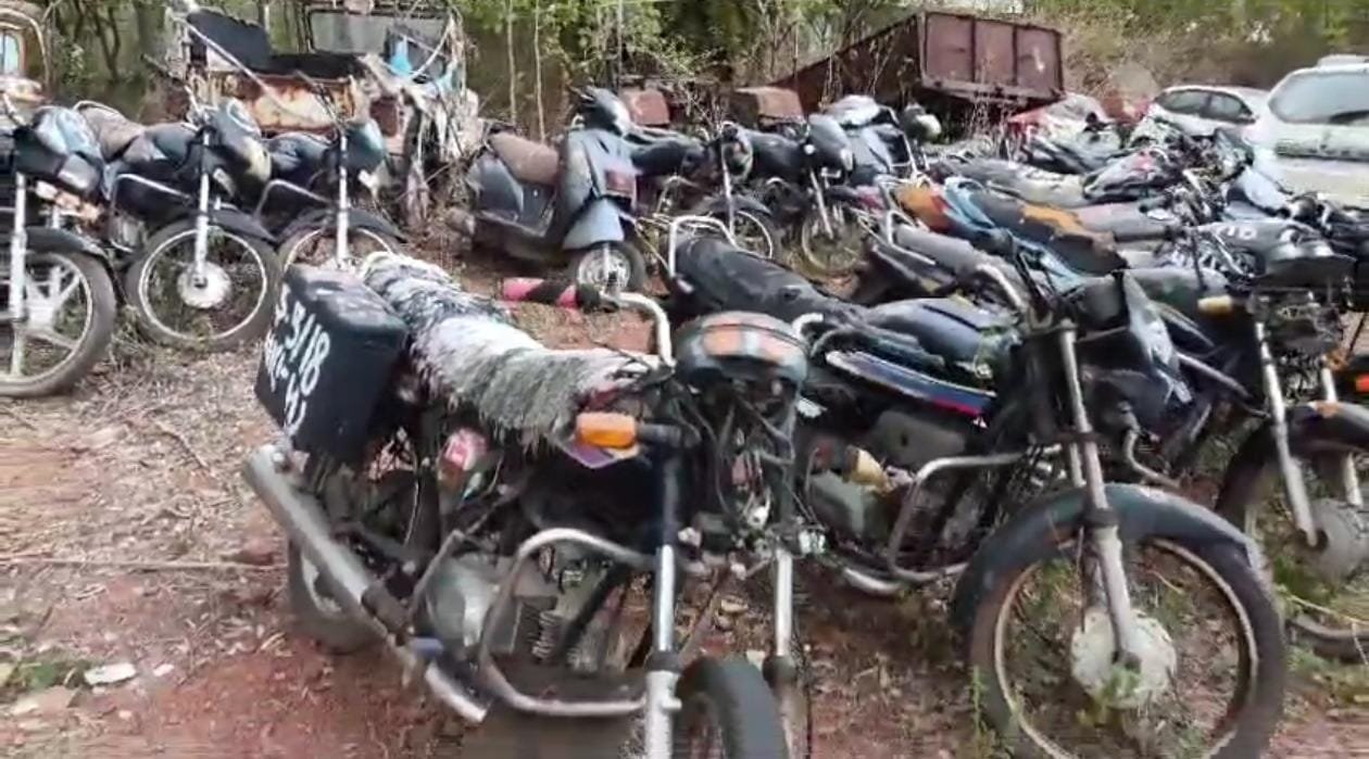 श्री अभिजीत रंजन पुलिस अधीक्षक कटनी, डा. संतोष डेहरिया अतिरिक्त पुलिस अधीक्षक कटनी, श्रीमति ख्याति मिश्रा नगर पुलिस अधीक्षक कटनी, श्री वीके मिश्रा कार्यपालिक मजिस्ट्रेट कटनी के समक्ष आज दिनांक 29/05/24 को थाना माधवनगर जिला कटनी मे धारा 25 पुलिस एक्ट मे जप्तशुदा अधोलिखित दो पहिया वाहन 46 नग, चार पहिया वाहन 7 नग, साईकल 105 नग एवं 14 नग अन्य वाहन जर्जर सामान्य स्थिति में अधिकांश कंडम कबाड की हालात में थे।