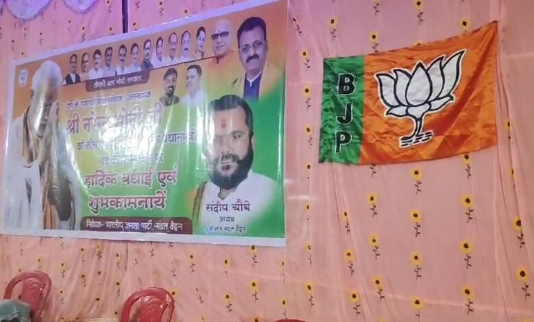 भारतीय जनता पार्टी मंडल अध्यक्ष संदीप चौबे के नेतृत्व में दुर्गा मंडप में धूमधाम से मनाया गया मोदी जी का तीसरा शपथ समारोह