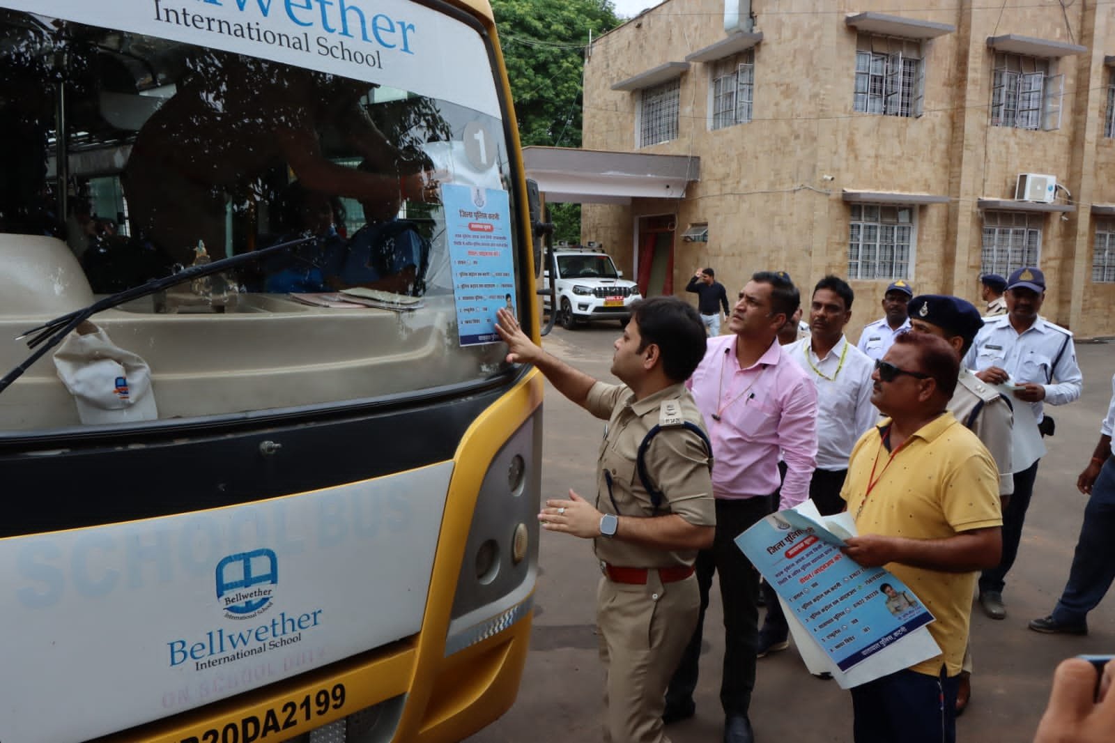 जिला पुलिस अधीक्षक के निर्देशानुसार थाना यातायात ने किया नवाचार स्कूली बच्चों को सुरक्षा हेतु गाड़ी में चिपकाएं पोस्टर