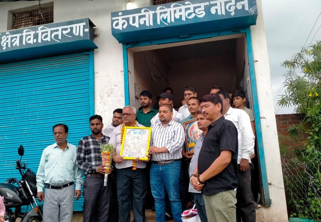 विदाई जिसमें समस्त बिजली विभाग का स्टाफ के द्वारा माला तस्वीर देकर सम्मान किया गया