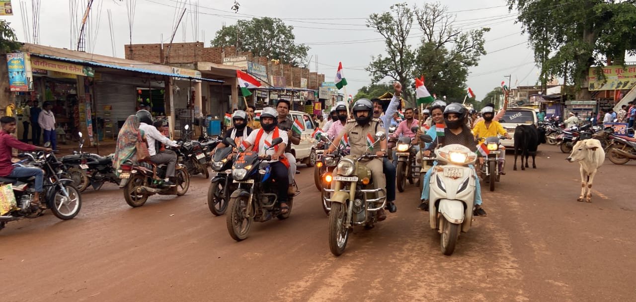 हर घर तिरंगा रैली में अतिरिक्त पुलिस अधीक्षक श्री संतोष डेहरिया, नगर पुलिस अधीक्षक श्रीमति ख्याति मिश्रा, उप पुलिस अधीक्षक श्री प्रभात शुक्ला, रक्षित निरीक्षक संध्या राजपूत,
