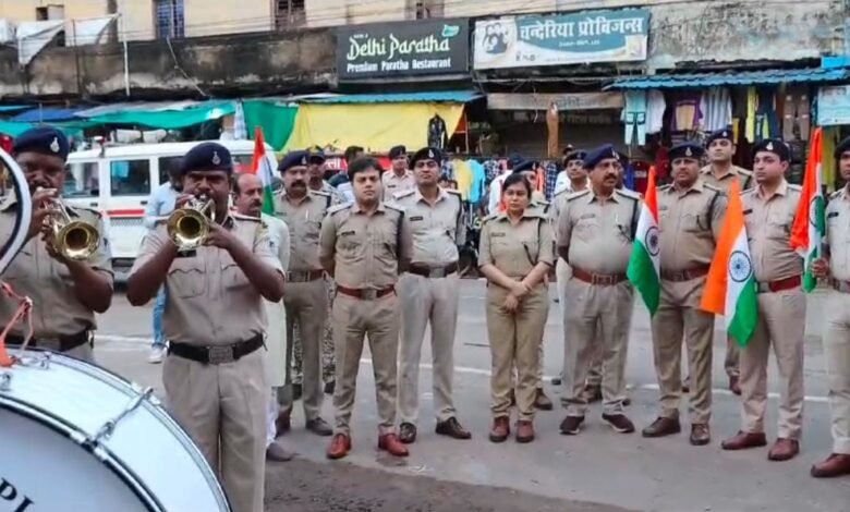 मध्य प्रदेश जिला कटनी में पुलिस बल ने बैंड बाजा के साथ स्वतंत्रता दिवस के उपलक्ष्य में हर घर तिरंगा एवं आजादी के रंग खाकी के संग अभियान के तहत जिला पुलिस बल कटनी द्वारा पुलिस बैंड सहित फ्लैग मार्च का आयोजन