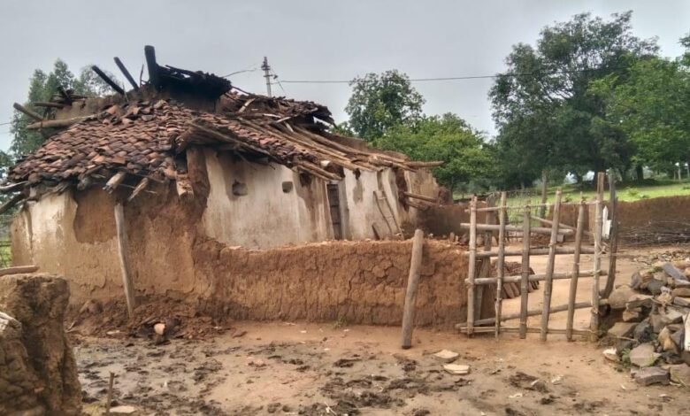 बारिश होने के कारण किसानों की घर छतिग्रस हो गया है