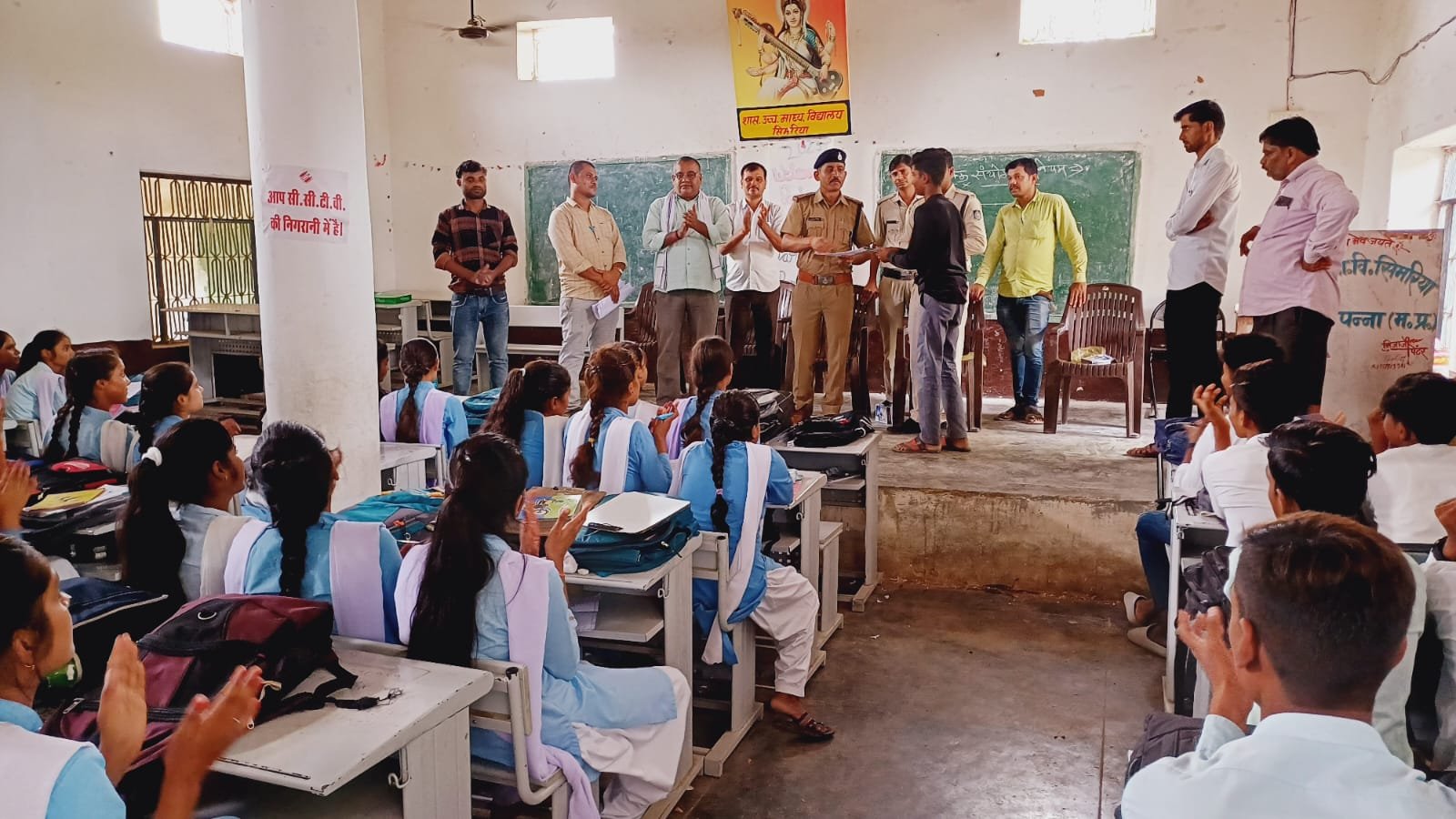 आज दिनांक 13/08/24 को थाना प्रभारी श्री संदीप दीक्षित द्वारा हायर सेकेंडरी स्कूल सिमरिया पहुंचकर कक्षा 9,10,11,12वी के छात्र-छात्राओं से देशभक्ति के संबंध में चित्रकला का आयोजन किया गया