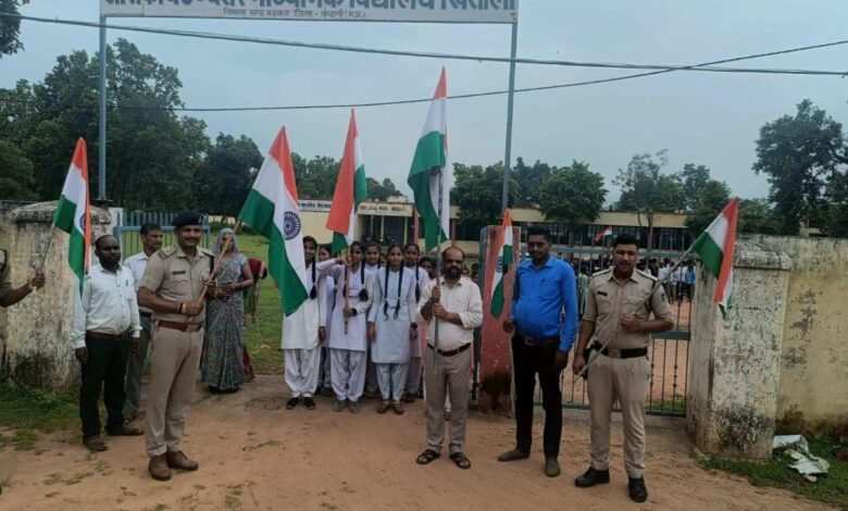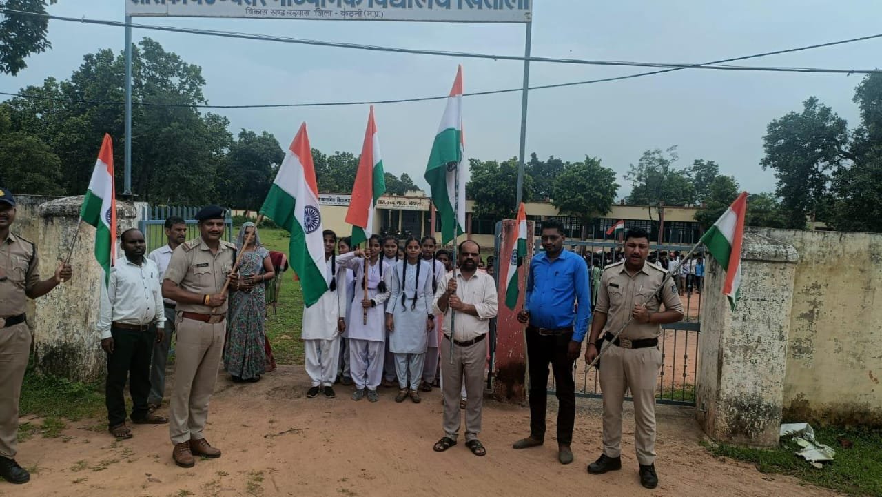 खितौली चौकी प्रभारी एवं हायर सेकेंडरी स्कूल की छात्र-छात्राओं के द्वारा निकाली गई तिरंगा यात्रा