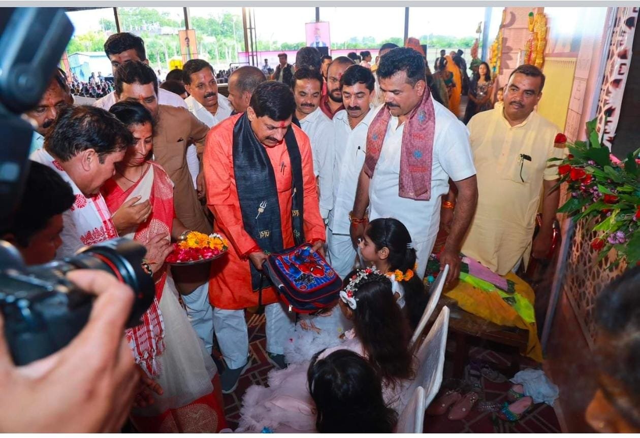 मध्य प्रदेश जिला उज्जैन में पावन अवंतिका नगरी के महाराजवाड़ा मंडल में आयोजित ‘रक्षाबंधन और श्रावण उत्सव’ कार्यक्रम का बहनों पर पुष्पवर्षा एवं कन्यापूजन कर शुभारम्भ किया।