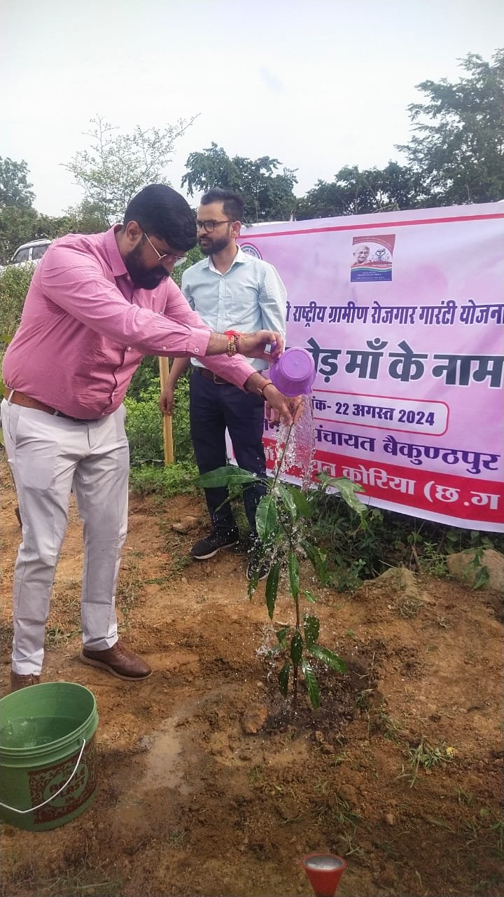 जनपद पंचायत बैकुंठपुर के ग्राम पंचायत नगर में एक पेड़ मां के नाम अभियान के तहत उन्होंने आम का पौधा लगाया।