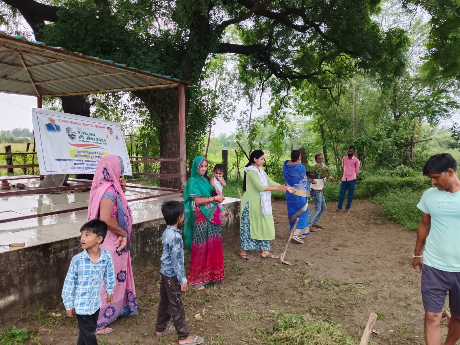 जिसमें वहां की घास की सफाई की गई माता के चबूतरे की सफाई एवं धू लाई का कार्य, शपथ दिलाई गई
