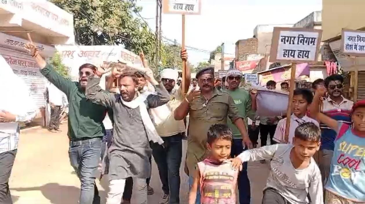 नगर निगम प्रशासन द्वारा कोई प्रतिक्रिया न देने पर आज दिनांक 4 को गौरी शंकर मंदिर से चावला चौक तक चक्का जाम कर नगर निगम प्रशासन अर्थी यात्रा निकाली गई एवम चक्का जाम कर पुतला फूका गया जैसे ही पुतला फूंकने की खबर प्रशासन के पास गई
