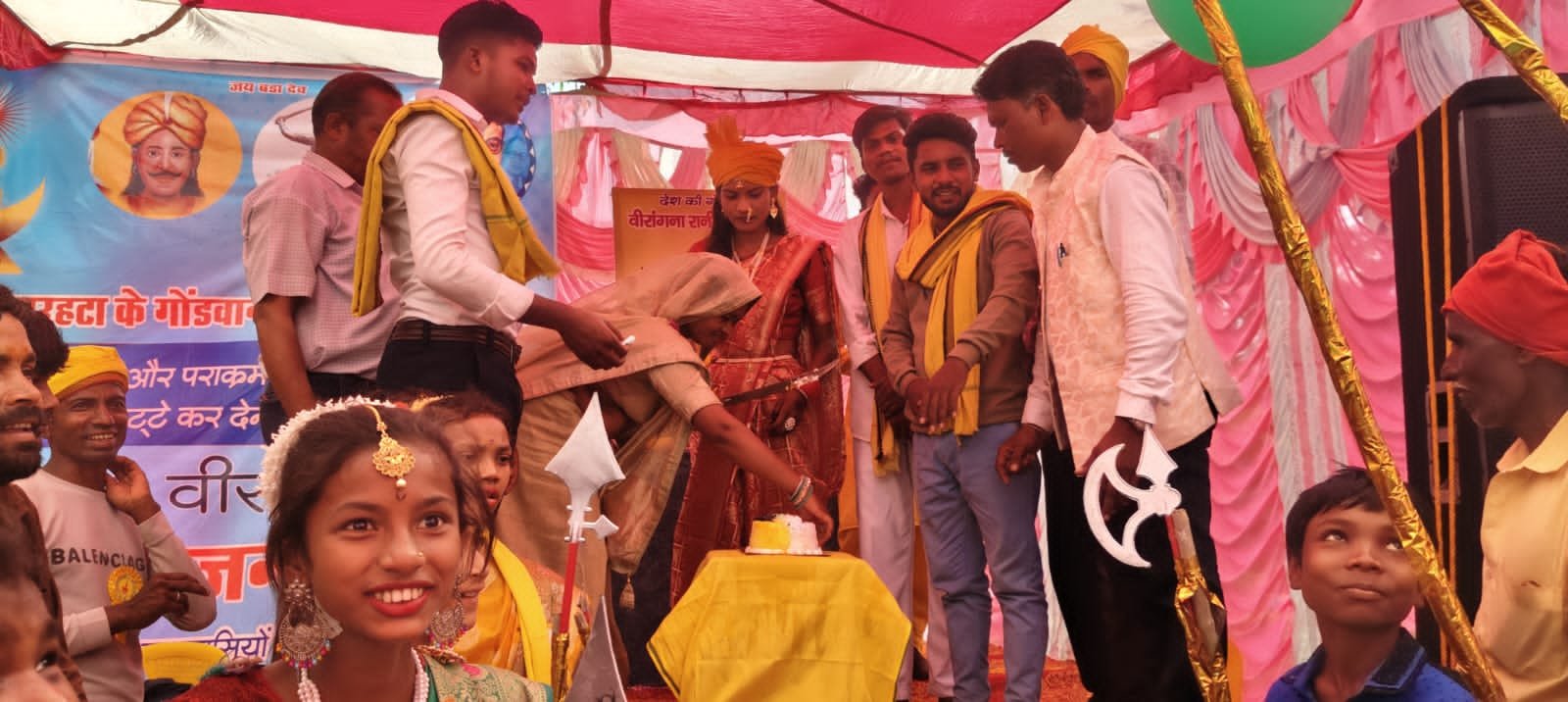 भीम युवा शक्ति संगठन के संस्थापक राहुल भैया सूर्यभान सिंह मरावी कृष्ण कुमार पटेल खितौली चौंकी थाना प्रभारी लक्ष्मण सिंह सरपंच सहजीत सिंह उइके जिन्होंने वीरांगना रानी दुर्गावती जी के साथ केक काट कर कार्यक्रम की शुरुआत की ।