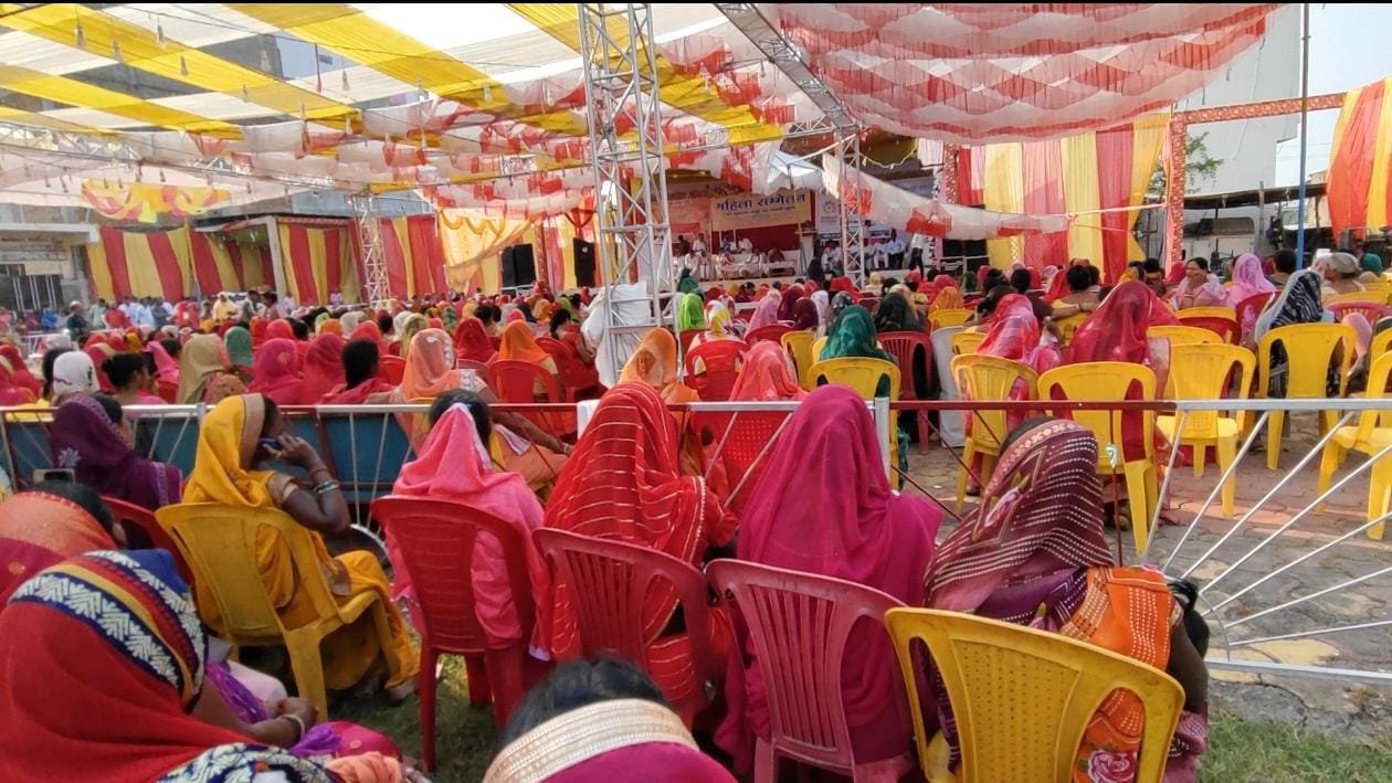अमरपाटन महिला बाल विकास कार्यक्रम के दौरान भारतीय जनता पार्टी में स्वयं सहायता समूह की महिलाओं को दिलाई गई सदस्यता