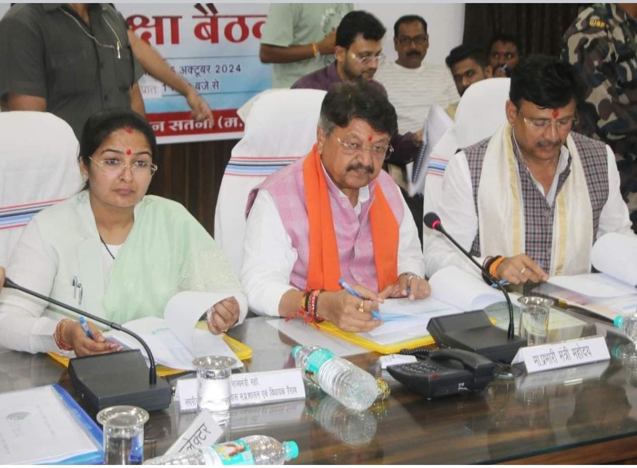 मध्य प्रदेश जिला सतना में 15 अक्टूबर 2024/मध्यप्रदेश शासन के नगरीय विकास एवं आवास मंत्री तथा सतना जिले के प्रभारी मंत्री श्री Kailash Vijayvargiya ने मंगलवार को कलेक्ट्रेट सभाकक्ष सतना में अधिकारियों की परिचयात्मक बैठक लेते हुए कहा कि जिले में चल रहे निर्माण और विकास परियोजनाओं के कार्य निर्धारित समय-सीमा में गुणवत्ता के साथ पूरे किये जाने चाहिए। उन्होंने कहा कि विकास योजनाओं में जन भागीदारी लेकर जनता को विकास कार्यों को जोडें तथा शहर को सुंदर और विकसित बनाने उनके सुझाव लें।