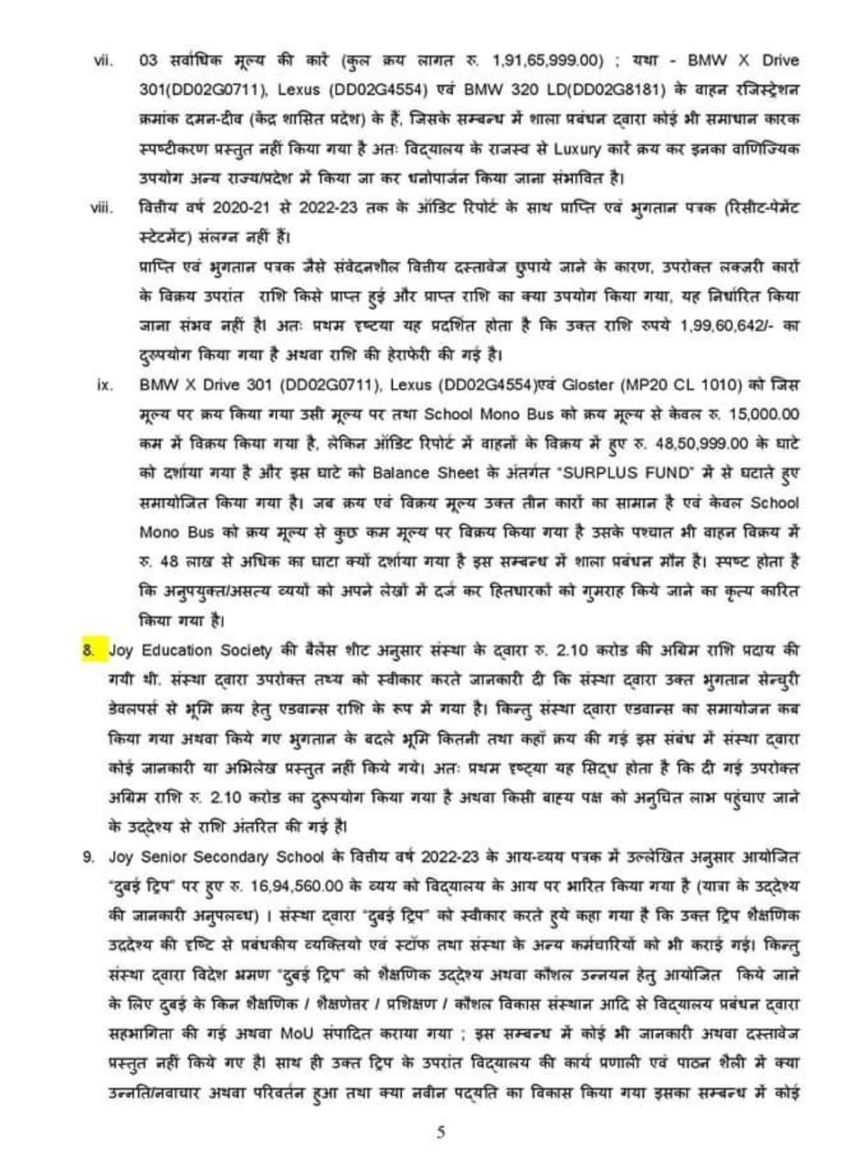 जॉय एजुकेशन सोसायटी के अध्यक्ष अखिलेश मेबिन और सचिव अनुराग श्रीवास्तव गिरफ्तार