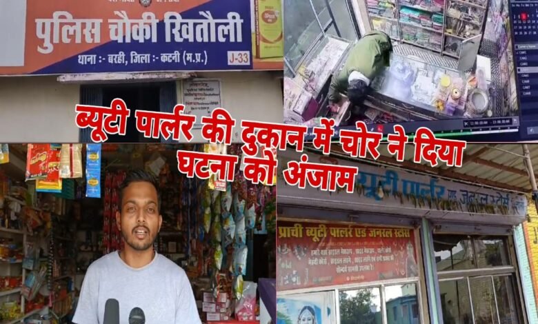 मध्य प्रदेश कटनी जिला बरही तहसील अंतर्गत खितौली में प्राची ब्यूटी पार्लर में चोरी की घटना को दिया गया अंजाम