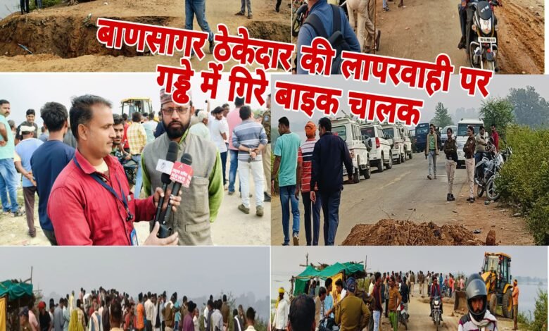 बिजरावगढ़ एसडीएम के आदेशों का उल्लंघन बांणसागर ठेकेदार की लापरवाही से गड्ढे में गिरे बाइक चालक तब जागा प्रशासन