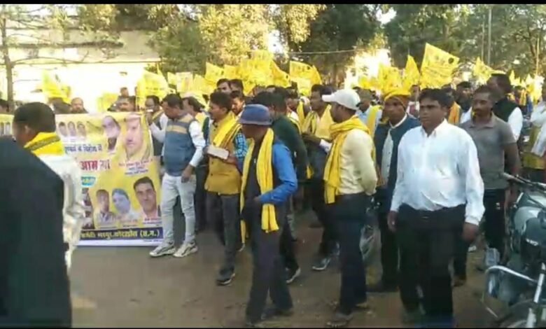छत्तीसगढ़ राज्य जिला एमसीबी भरतपुर तहसील अंतर्गत नगर पंचायत जनकपुर में गोंडवाना गणतंत्र पार्टी की ओर से इकदिवासी धरना प्रदर्शन एवं ज्ञापन दिया गया