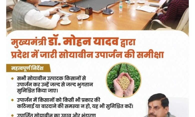 मुख्यमंत्री डॉ. मोहन यादव ने प्रदेश में जारी सोयाबीन उपार्जन पर की गई समीक्षा