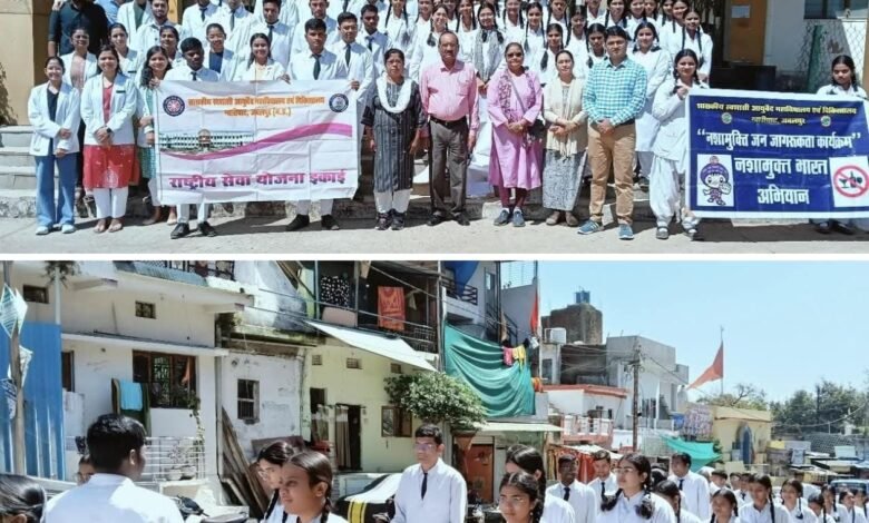 गौरीघाट शासकीय स्वशासी आयुर्वेद महाविद्यालय एवं चिकित्सालय के छात्र-छात्राओं ने निकाली रैली नशामुक्ति रक्तदान का दिया संदेश