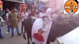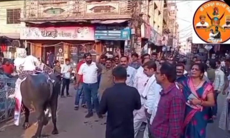 जिसके चलते कटनी जिले का क्षत्रिय राजपूत समाज ने विरोध जताते हुए सपा सांसद रामजी लाल सुमन का पुतला भैंस पर बैठालकर ढोल बाजे के साथ बारात निकली।
