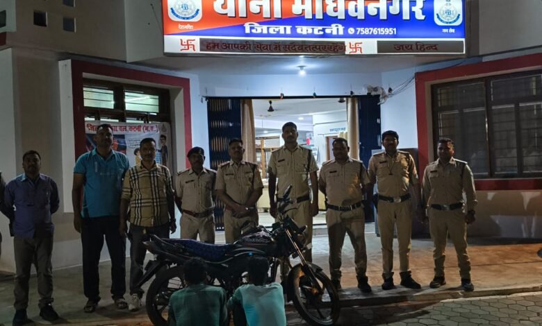 मध्य प्रदेश जिला कटनी थाना माधवनगर पुलिस की बड़ी सफलता, चोरी की गई मोटर सायकिल बरामद, 02 आरोपी गिरफ्तार।।