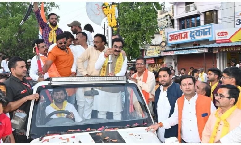 वाहन रैली में पूज्य संतो दंडी स्वामी कालिकानंद जी महाराज, जगतगुरु द्वाराचार्य सुखानंद राघवदेवाचार्य जी महाराज, जगतगुरु रामानंदचार्य स्वामी बालगोविंदाचार्य जी महाराज, जगतगुरु स्वामी नरसिंहदेवाचार्य जी महाराज, पं वासुदेव शास्त्री, पं रोहित दुबे, पं अशोक मनोध्या के सानिध्य में गुलौआ चौक से गोलबाजार तक निकाली वाहन रैली में लोक निर्माण मंत्री श्री राकेश सिंह पार्टी कार्यकर्ताओ के साथ शामिल हुए।